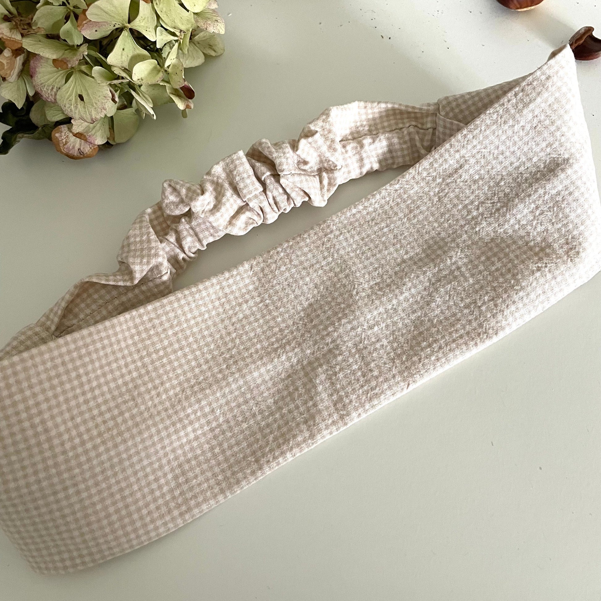 Bandeau vichy beige “Élise” – Accessoire cheveux délicat & confortable