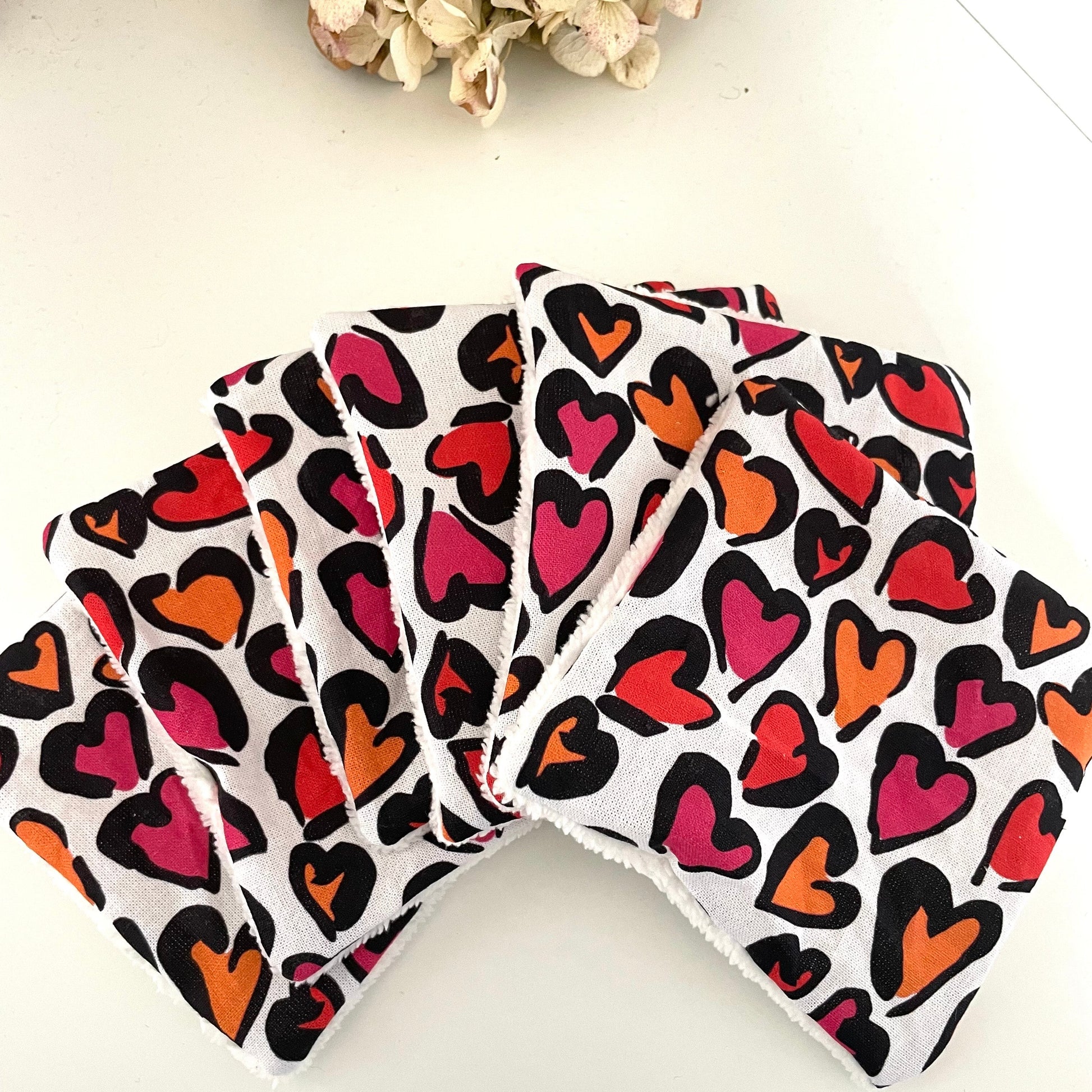 Avec leur motif cœurs colorés, elles apportent une touche tendre et joyeuse à la routine beauté et au démaquillage.