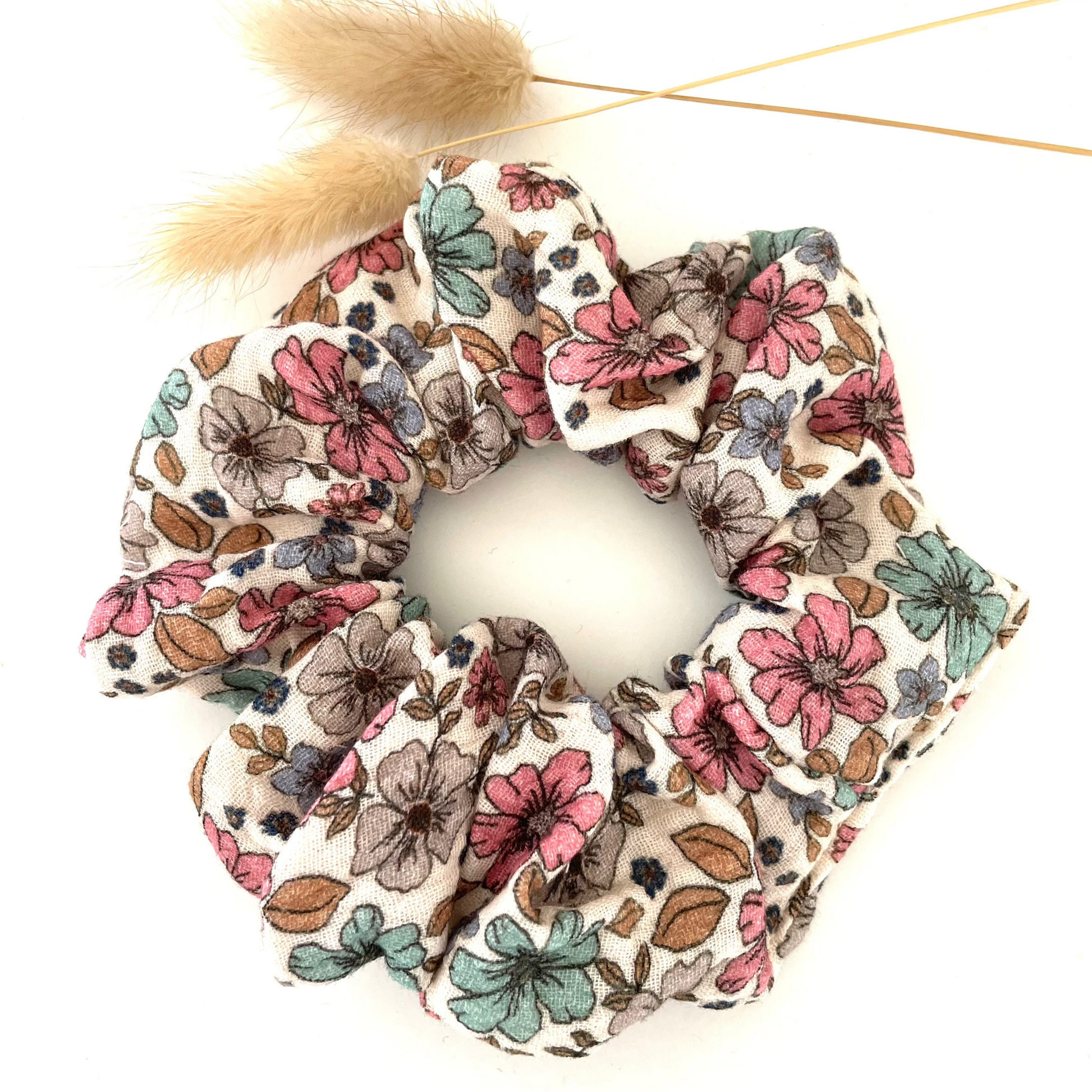 POUR LES COQUETTES CE CHOUCHOU EN DOUBLE GAZE DE COTON FLORAL VINTAGE