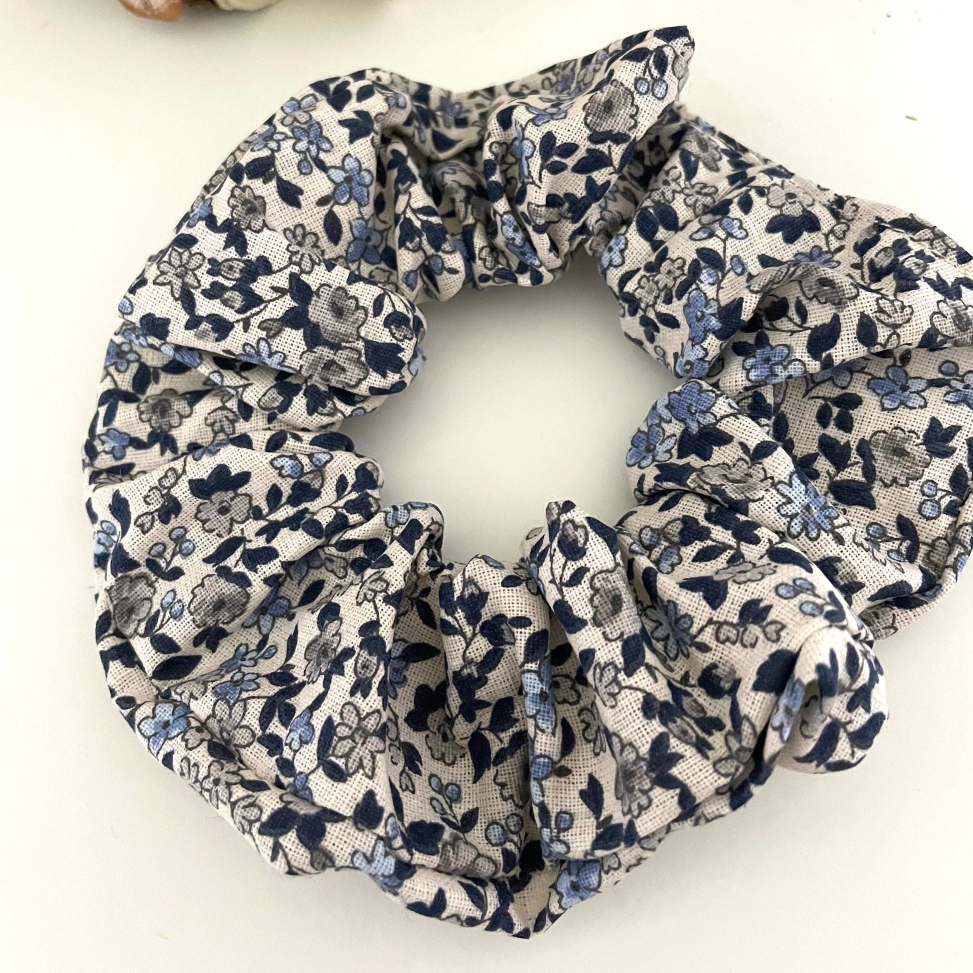 Son tissu léger en coton à motifs floraux bleus et gris apporte une note poétique à vos tenues, tout en respectant vos cheveux grâce à son élasticité confortable.