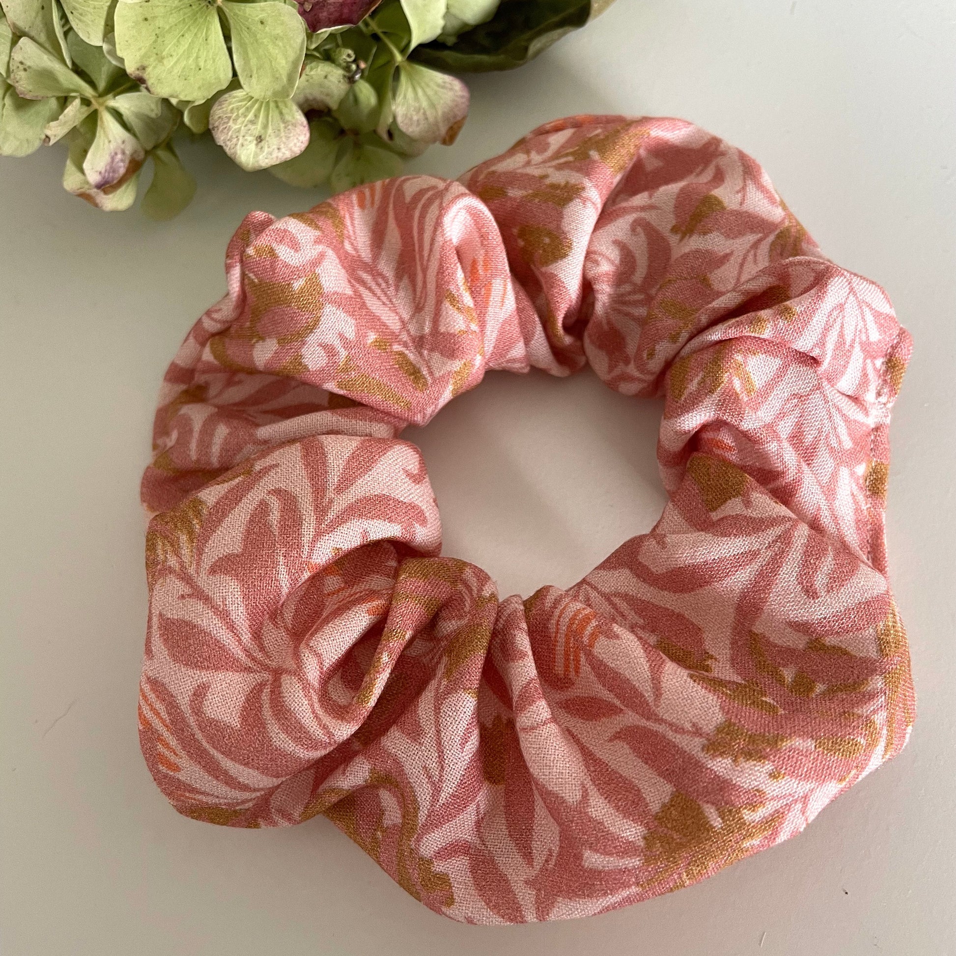 Apportez une touche de poésie à vos coiffures avec notre chouchou rose aux motifs feuillages dorés . Son tissu délicat et lumineux évoque la douceur des jardins romantiques et sublime vos looks avec élégance.