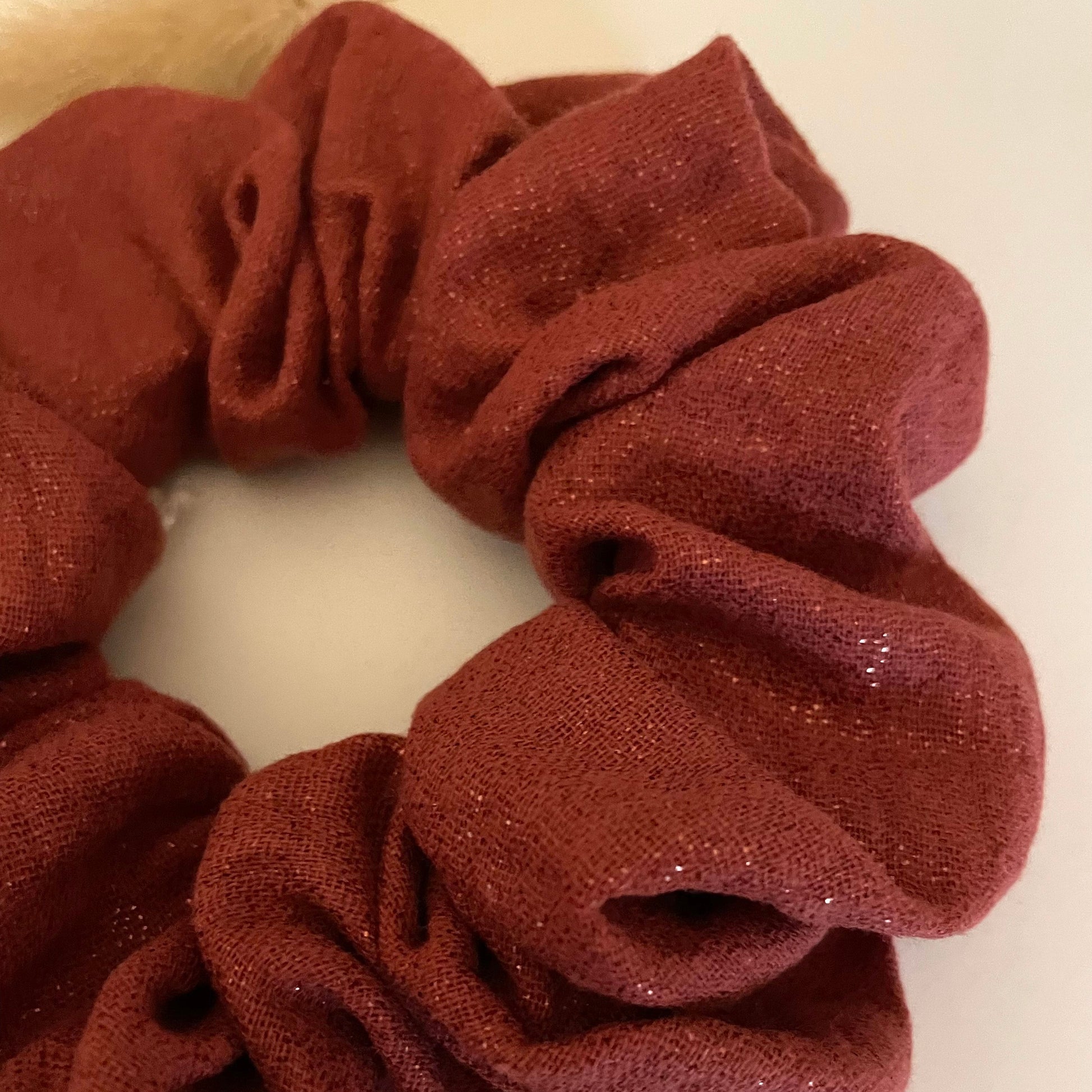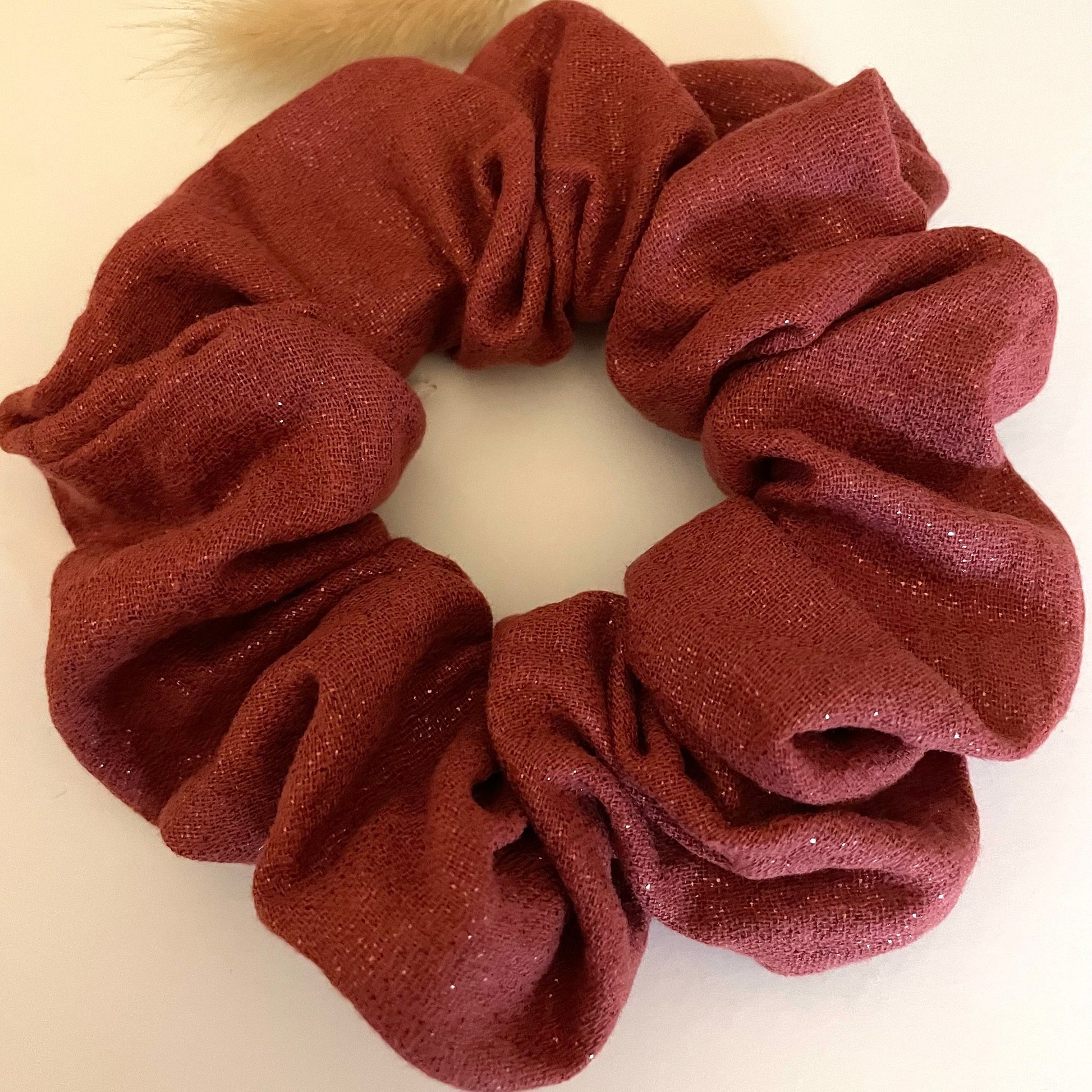 Apportez une touche lumineuse à vos coiffures avec ce chouchou en double gaze pailletée terracotta. Doux, léger et confortable, il offre un volume naturel tout en ajoutant une note élégante et scintillante. Parfait pour le quotidien comme pour les occasions.