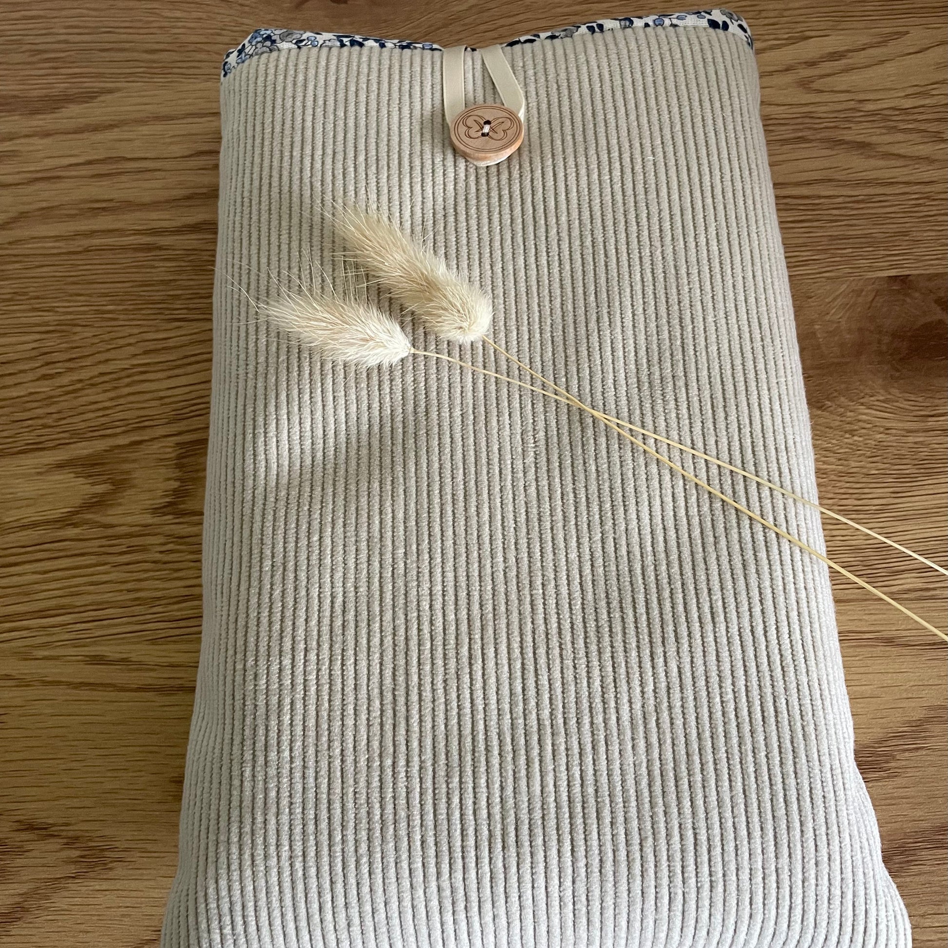 🩵 Pochette à livre molletonnée en velours crème et Liberty bleu